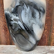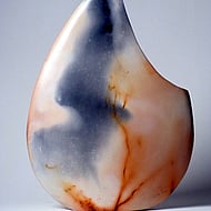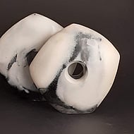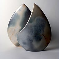 My smoke fired vessels are of simple forms that reflect geology and archaeology and capture a moment when a stone or pebble has been picked up, changed by man, used and discarded to return back to the earth. Each piece is unique, hand built, formed, carved and burnished. Colours are achieved by the careful use of slips, oxides and salts during the firing process.